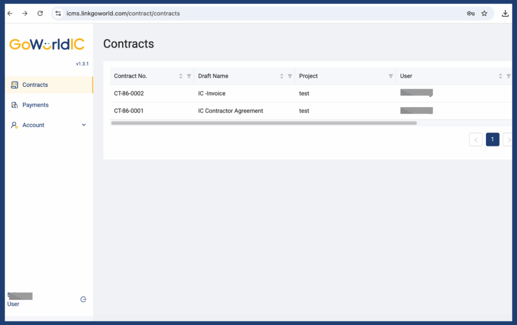 Once logged in, contractors can easily view all active and past contracts through the Contracts tab.